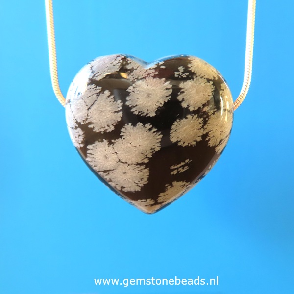 Sneeuwvlok Obsidiaan hartenhanger doorboord 30 mm