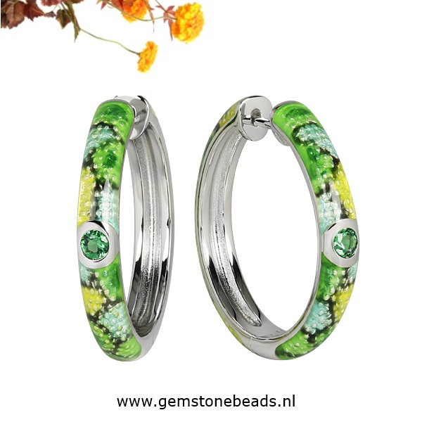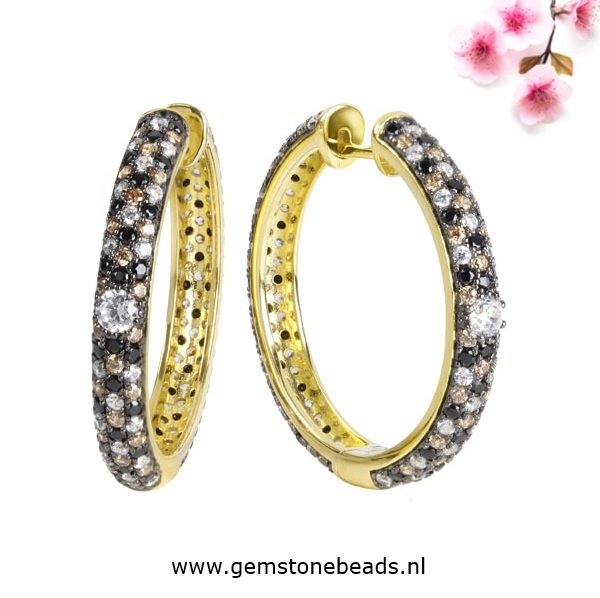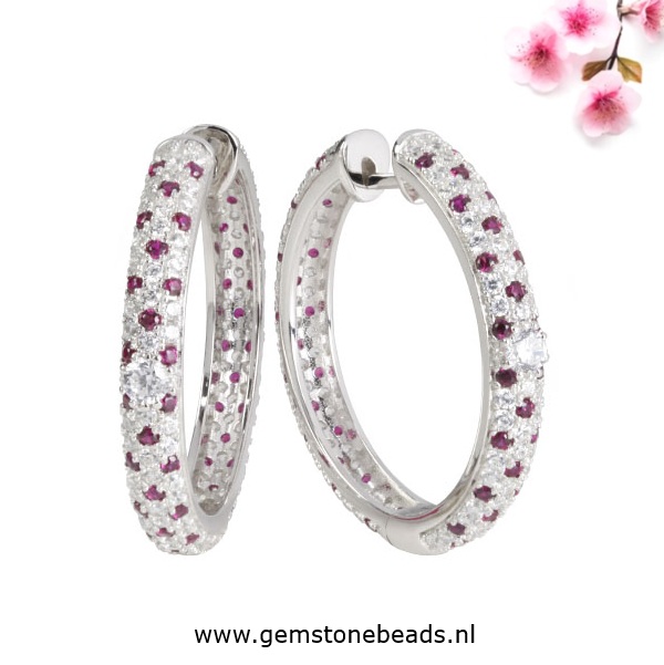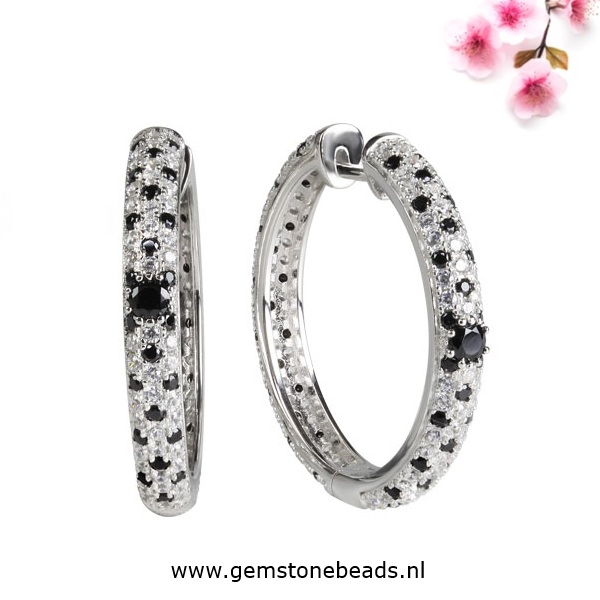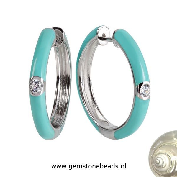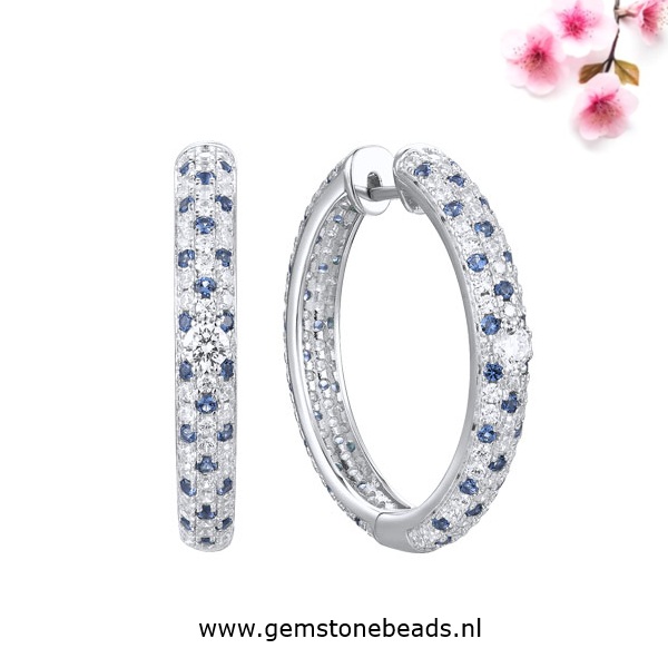 Zilveren oorringen zirconia blauw en wit 22 mm