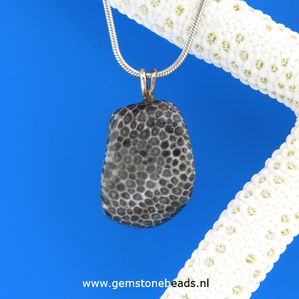 Ammoniet hanger met verguld oogje van 23 x 19 mm