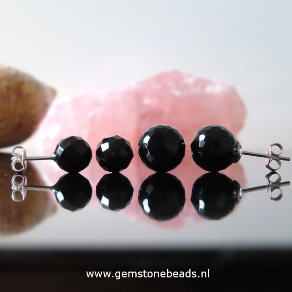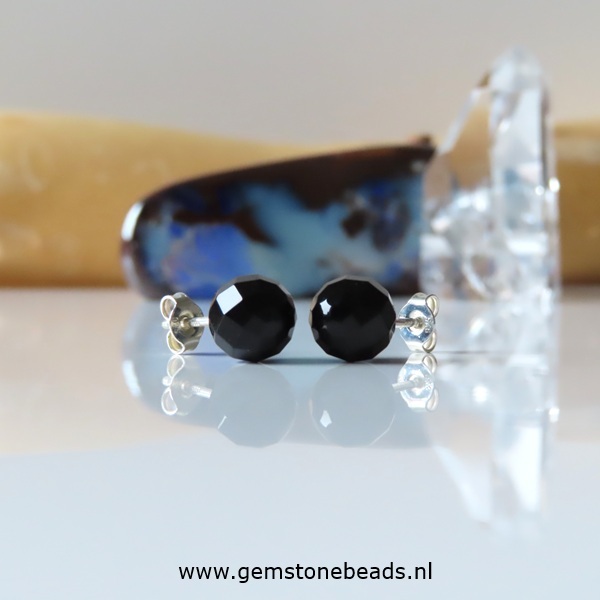 Onyx facet geslepen oorknopjes 925 van 8 mm