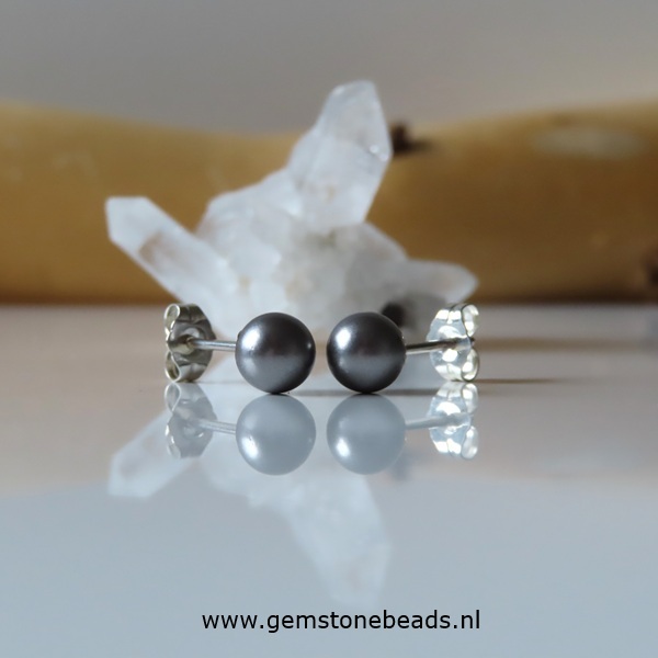 Grijze schelpparel oorknopjes 925 van 6 mm