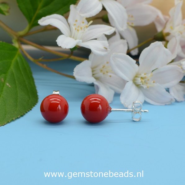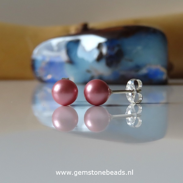 Roze Opaal oorknopjes in 925 setting van 8 mm