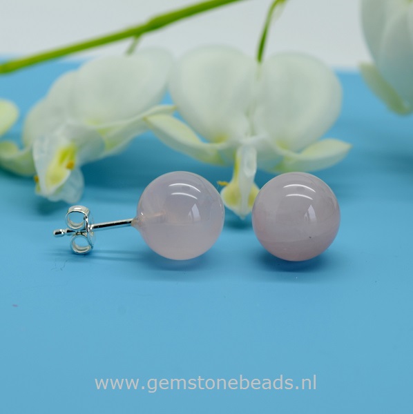 Rozenkwarts oorknopjes 925 cabochon 10 mm