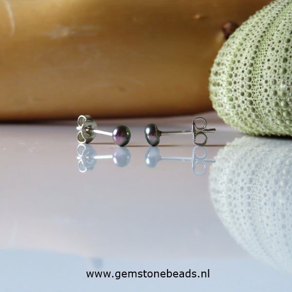 Zoetwaterparel oorknopjes grijs 925 van 4 mm