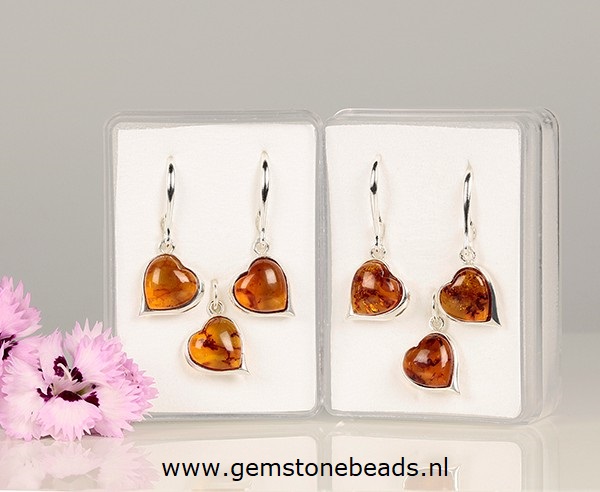 Barnsteen oorbellen 925 en een hartenhangertje