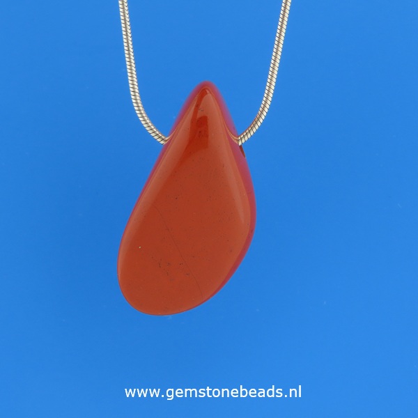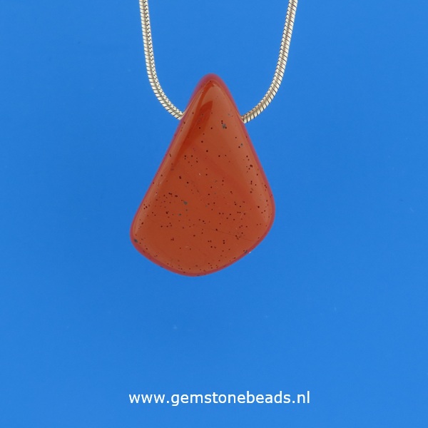 Rood bruine Jaspis wordt ook wel Silex (Hoornsteen/Vuursteen) genoemd en heeft een hoog ijzergehalte wat goed is voor het bloed en de wil door aarding.